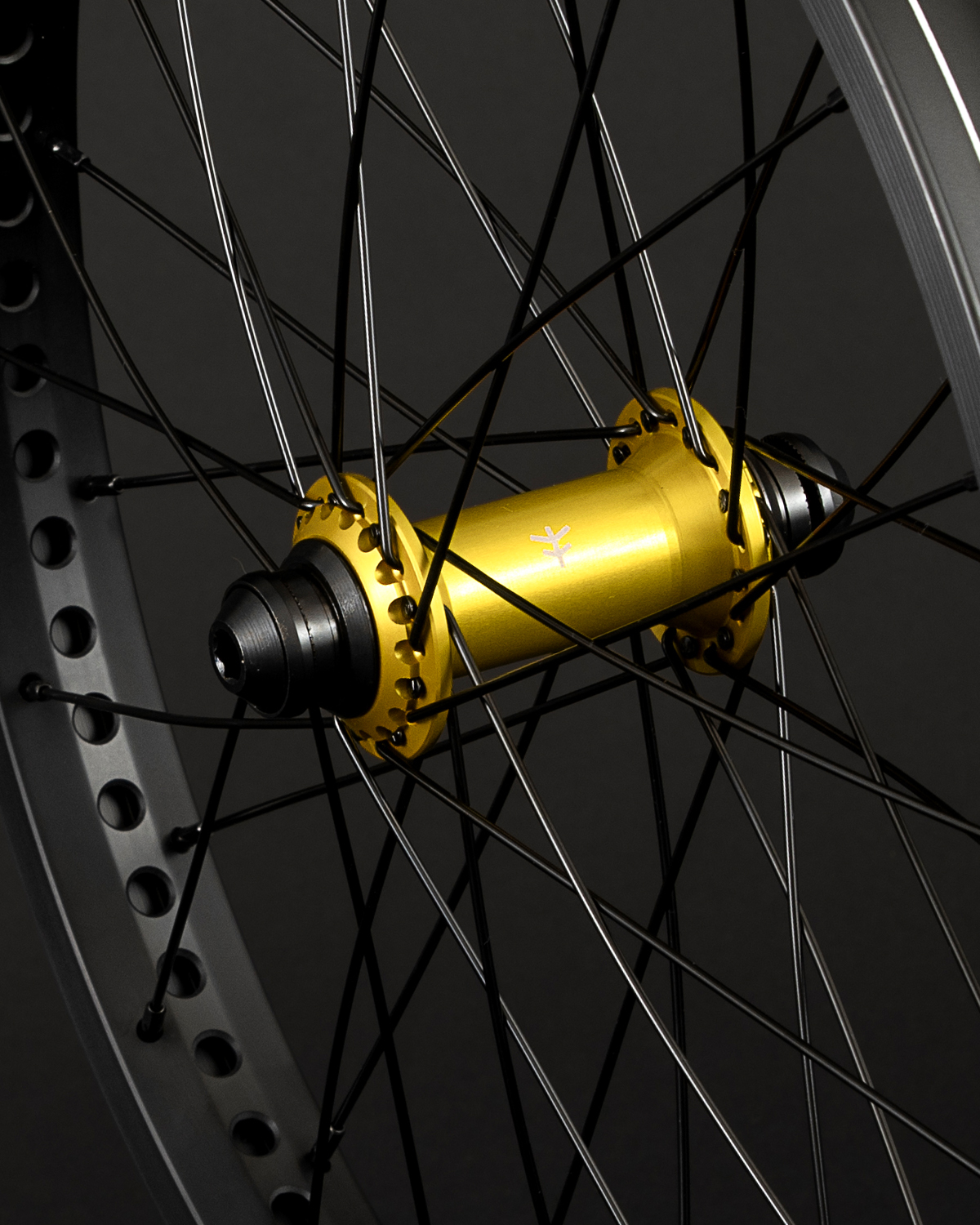 The Magneto Front Hub features oversized bearings that allow us to use a strong 7075 Aluminum female axle. The end caps and bolts use the same process as the Cassette hub. Compatible with Magneto non-drive side hub guard.
